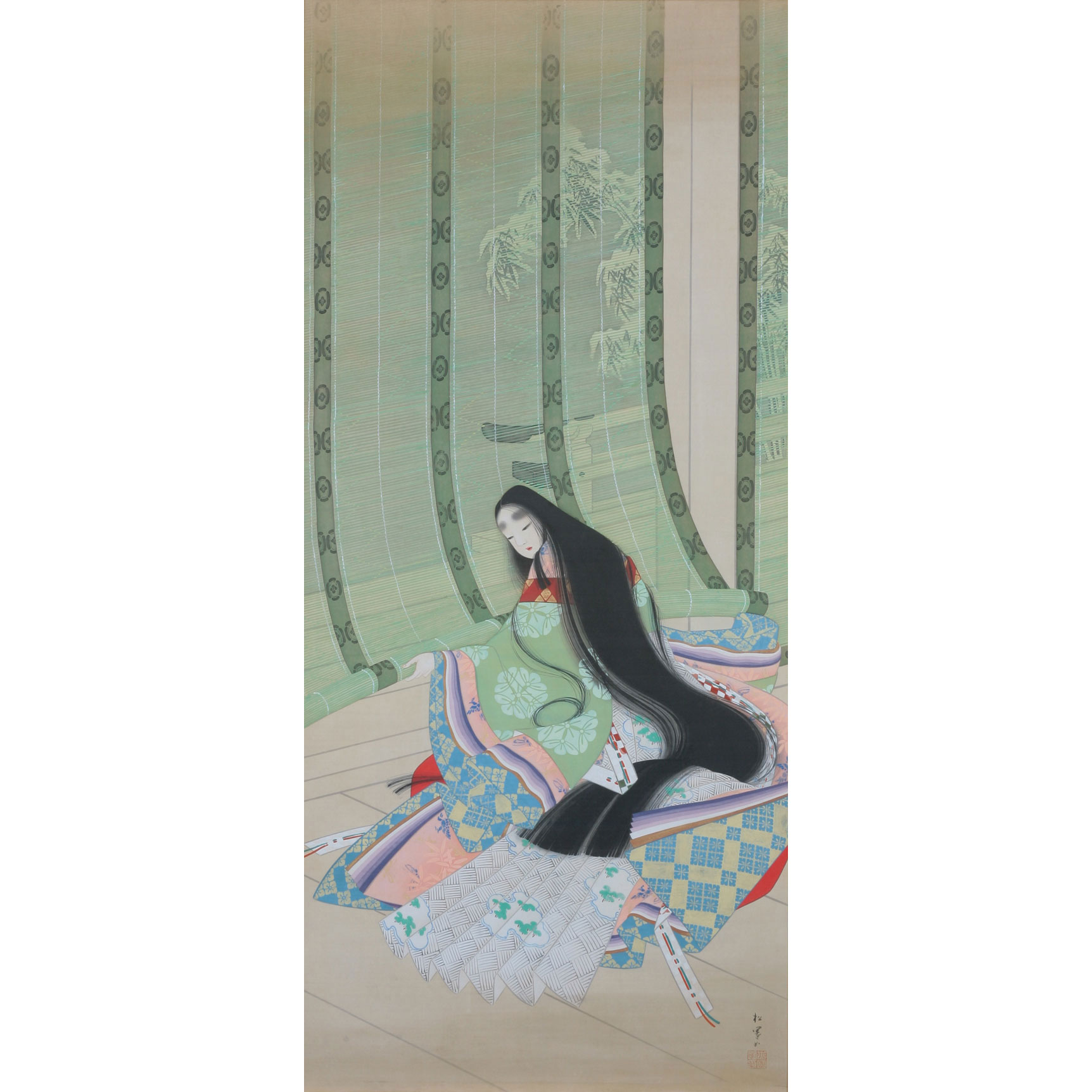 《清少納言》1917-18年頃 個人蔵 ◎通期展示 新発見となる作品《清少納言》(1917-18年頃、個人蔵)を本邦初公開!名作《花がたみ》(1915年)と《焰》(1918年)の間の時期に制作された、大正期の松園の名作です。その存在は知られていましたが、作品そのものは長らく行方不明でした。作品発表時以来、初めての出品となります。