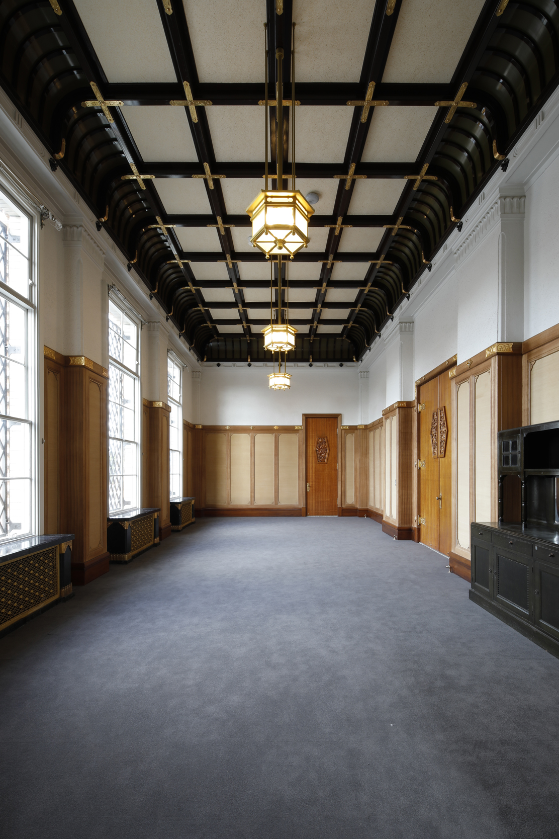 本館正面2階に位置する貴賓室は、1933年(昭和8年)創建当初の姿を今に残す特別な空間です。装飾掘り込みのある木製建具や照明器具は創建当初のまま美装を施し保存しています。開館90周年を記念して、通常非公開の貴賓室を2日間に限り特別公開します。
