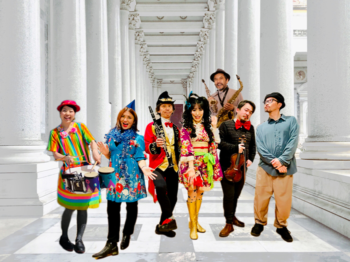 メンバー:大熊ワタル[クラリネット]、こぐれみわぞう[チンドン太鼓、歌]、川口義之[サックス]、関島種彦[バイオリン、マンドリン]、サルディ佐藤比奈子[アコーディオン]、木村仁哉[テューバ]、ふーちん[パーカッション]