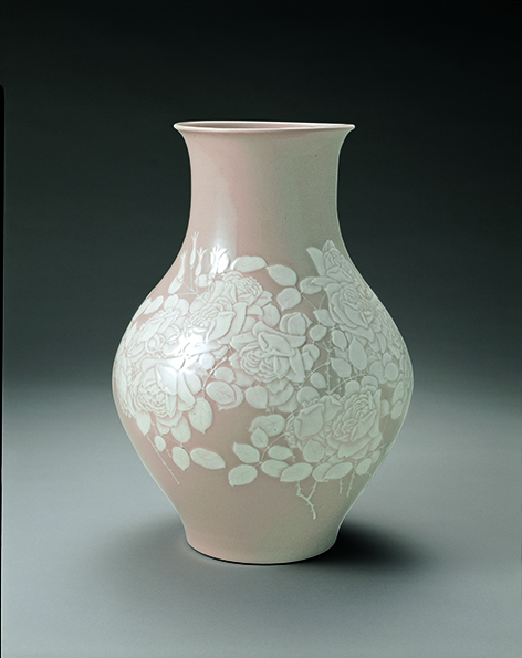 《大礼磁薔薇紋花瓶》1925年 五代清水六兵衞 個人蔵 ◎通期展示 -