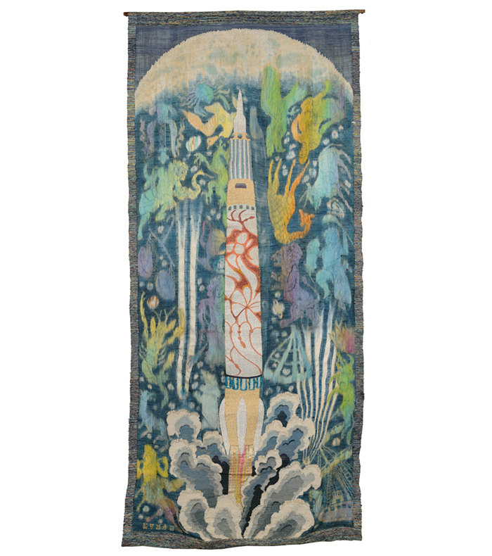 山鹿清華《手織錦壁掛 正座・月・ロケット》1958 年、京都市美術館蔵 -