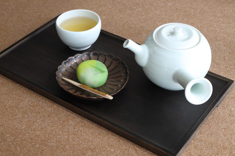 2020年春のコレクションルームにあわせた 「京菓子司 金谷正廣」のコラボ和菓子。丹羽 阿樹子《遠矢》をモチーフに。 撮影:前谷開 ミュージアムカフェ ENFUSEでは、安政3年創業「京菓子司 金谷正廣」による所蔵品をモチーフにした生菓子(展示にあわせて年4種)を提供し店内で召し上がっていただけます。