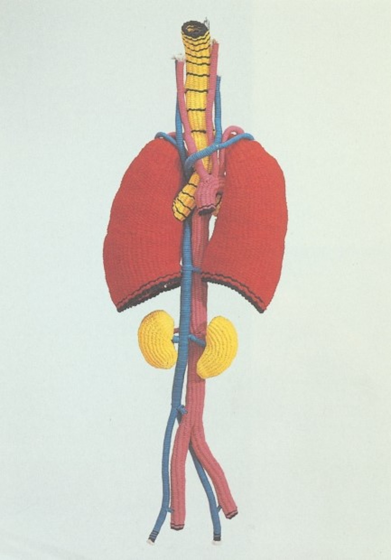 小名木陽一《肺と腎臓》1975年 京都市美術館蔵 私たちは、自分の「身体」の全てを一度に見ることができるでしょうか?体の内部など目に見えない部位を含めると難しいでしょう。人間は、断片的に認識している「からだ」を繋ぎ合わせて一つの身体のイメージを形成するという考えがあります。この展覧会では、「からだ」のパーツを鮮やかな色彩と大胆なスケールで制作した小名木陽一の新収蔵品を中心に、福田美蘭の《誰ケ袖図》(2015年)などを紹介します。それらの作品を通して、日常生活において何気なく接している私たちの「からだ」について問い直します。