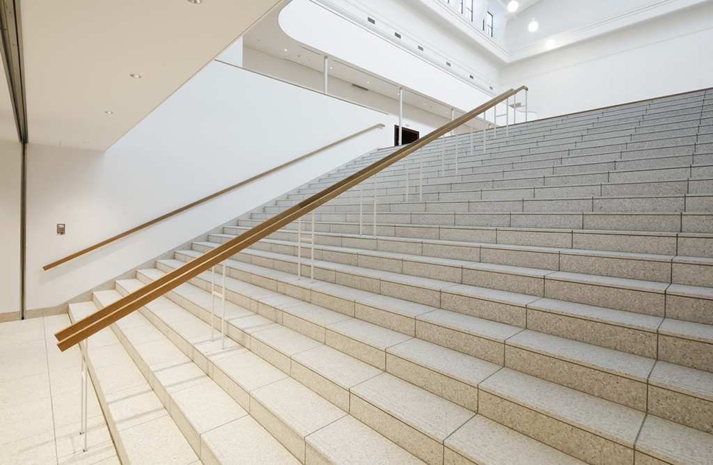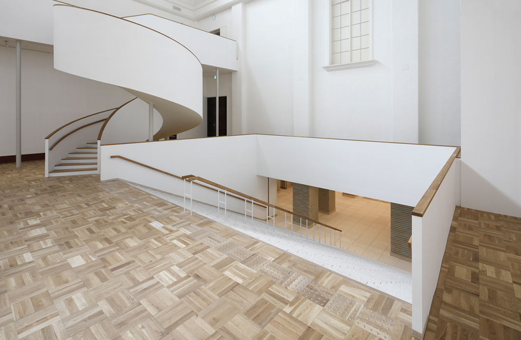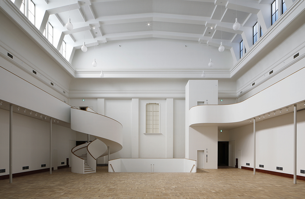 今回のリノベーションにより、本館の中心に位置する天井高16mの旧大陳列室は、地下1階メインエントランスのロビーから大階段によってつながる「中央ホール」へと大幅に機能が変化しました。