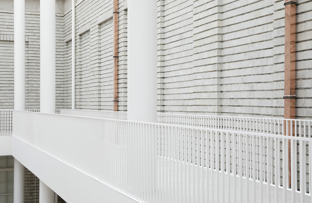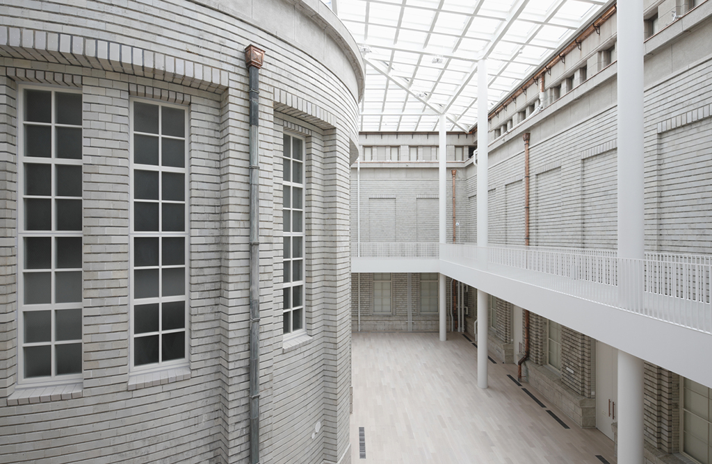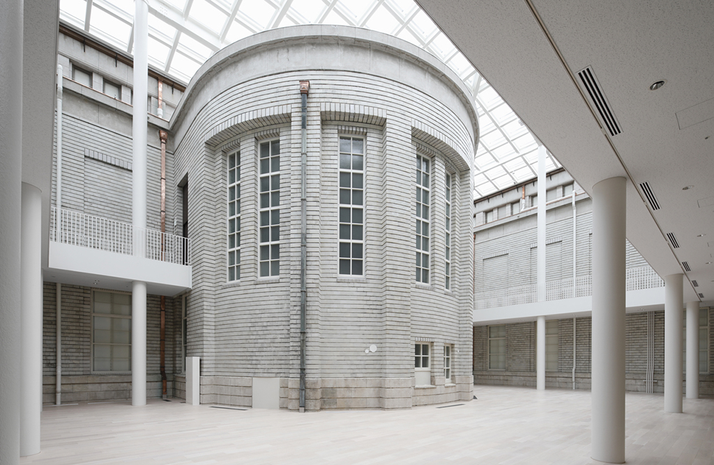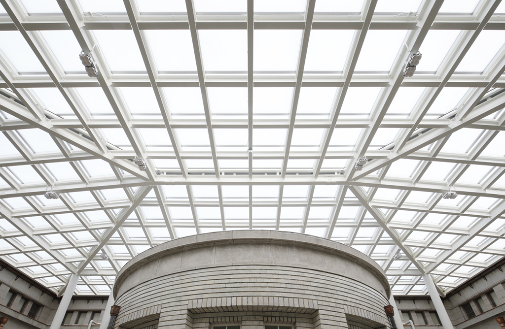 これまで使われていなかった本館内2箇所の中庭は、竣工当時の意匠を生かした多機能な大空間として生まれ変わりました。北回廊の中庭「光の広間」は2階レベルにバルコニーを設け、ガラスの大屋根がかかりました。光が差し込む室内空間化することで、レセプション・イベントの会場、特別作品の展示スペースなどとして、フレキシブルに活用することが可能となりました。